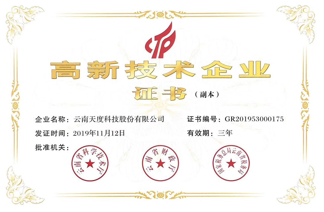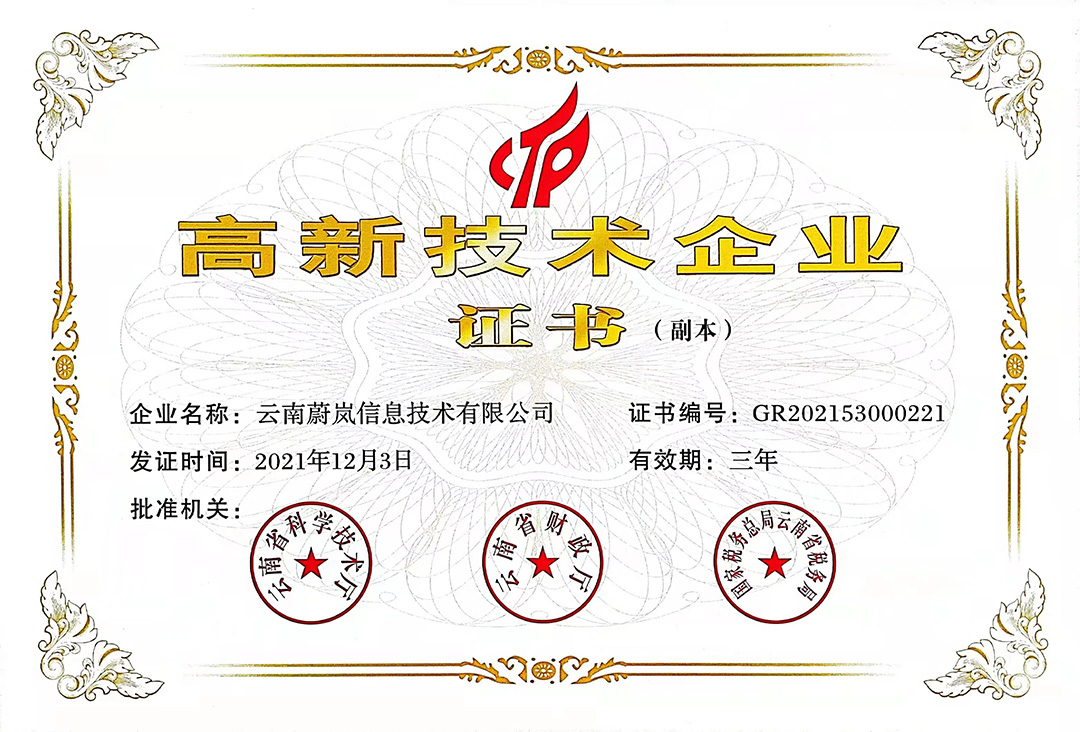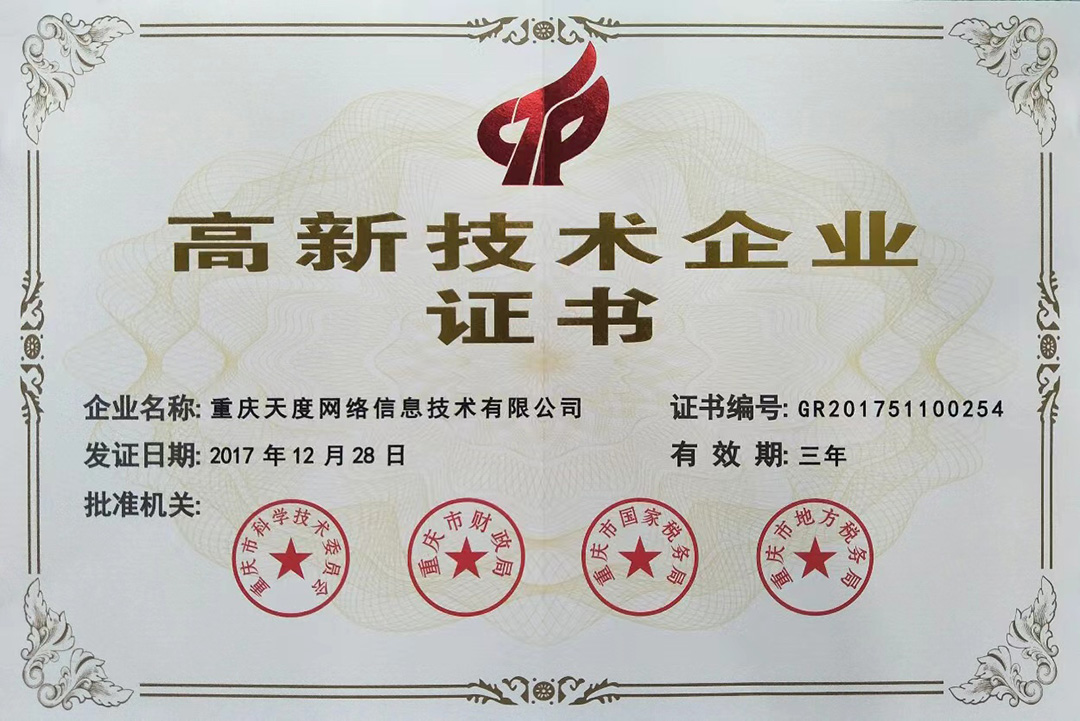 云南天度集團(tuán)旗下云南蔚嵐信息技術(shù)有限公司、云南天度科技股份有限公司、云南天度軟件系統(tǒng)有限公司、昆明天度網(wǎng)絡(luò)信息技術(shù)有限公司、重慶天度網(wǎng)絡(luò)信息技術(shù)有限公司等5家企業(yè)獲得國家高新技術(shù)企業(yè)認(rèn)定。
