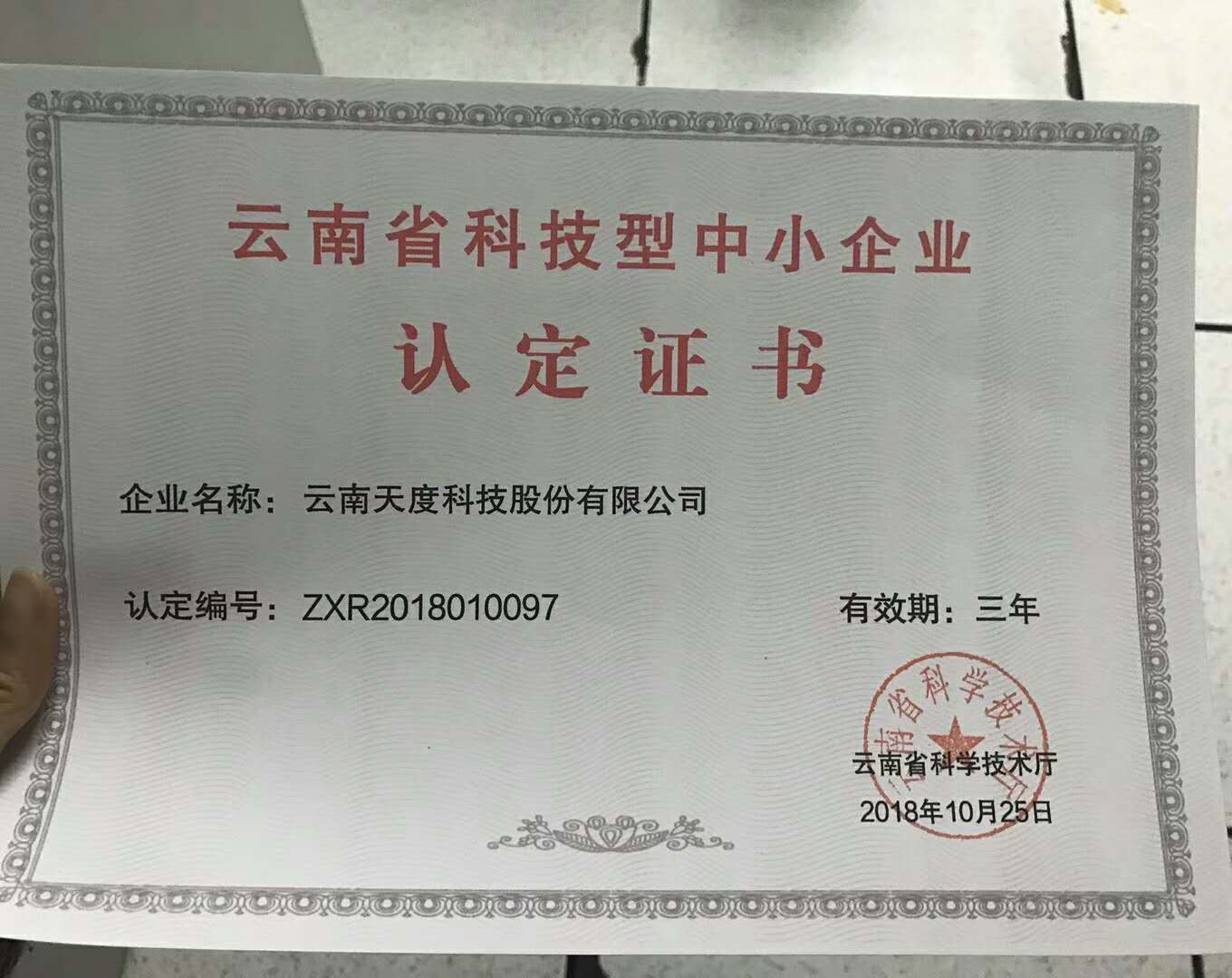 經(jīng)科技部門審核,確定天度符合科技型中小企業(yè)要求,3月29日,昆明天度網(wǎng)絡信息技術有限公司成功入庫登記成為2018年“全國科技型中小企業(yè)”!
