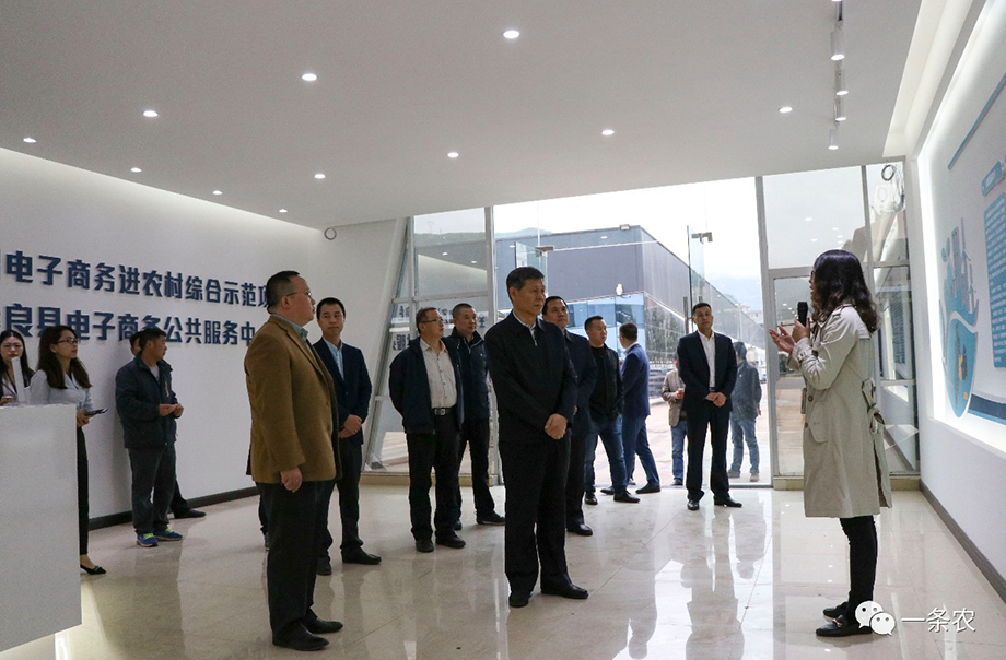 2018年10月19日,中國五礦集團黨委副書記、副總經(jīng)理董明俊(副部級,圖右二),中鎢高新材料股份有限公司董事長李仲澤,集團黨委工作部部長王云林,昭通市委常委、市委秘書長韓立志,昭通市扶貧辦副主任蔡翔、彝良縣副縣長羅軍等領(lǐng)導前往彝良縣電子商務公共服務基地, 調(diào)研電子商務進農(nóng)村綜合示范項目的建設(shè)情況、了解項目進度安排、縣域農(nóng)產(chǎn)品的品牌打造和銷售情況等。