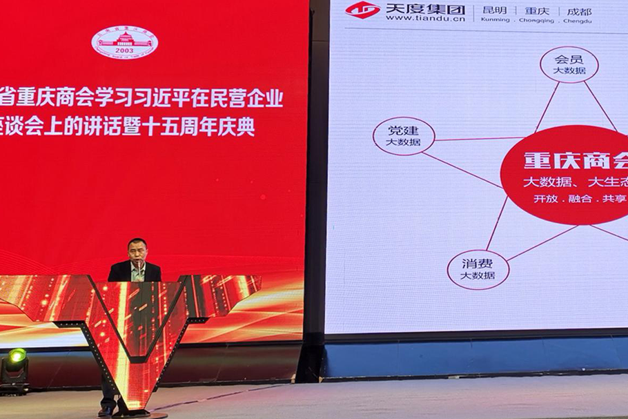 2018年12月21日下午,云南省重慶商會在云安會都國際會議中心隆重舉行主題為《云南省重慶商會學習習近平總書記在民營企業(yè)座談會上的講話暨十五周年》活動,云南省人民政府副省長王顯剛,云南省政協副主席、省工商聯主席喻頂成等領導出席了會議,天度集團董事長鄭桂文現場對“商會大數據”建設情況進行介紹并出席了大數據平臺啟動儀式。