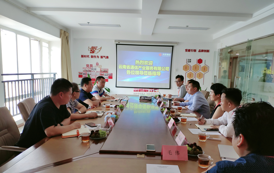 云南省通信產(chǎn)業(yè)服務(wù)有限公司黨委書記、總經(jīng)理胡元等一行蒞臨天度集團考察調(diào)研