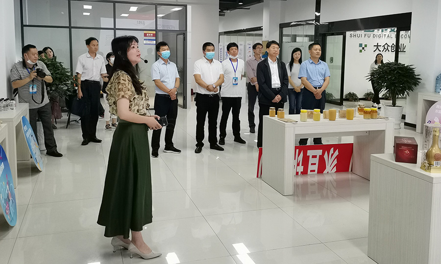 趙瑞君一行實(shí)地參觀(guān)了水富市數(shù)字電商產(chǎn)業(yè)園,聽(tīng)取了園區(qū)負(fù)責(zé)人天度集團(tuán)胡曉玲對(duì)開(kāi)園以來(lái)運(yùn)營(yíng)、銷(xiāo)售、規(guī)劃等情況匯報(bào)。