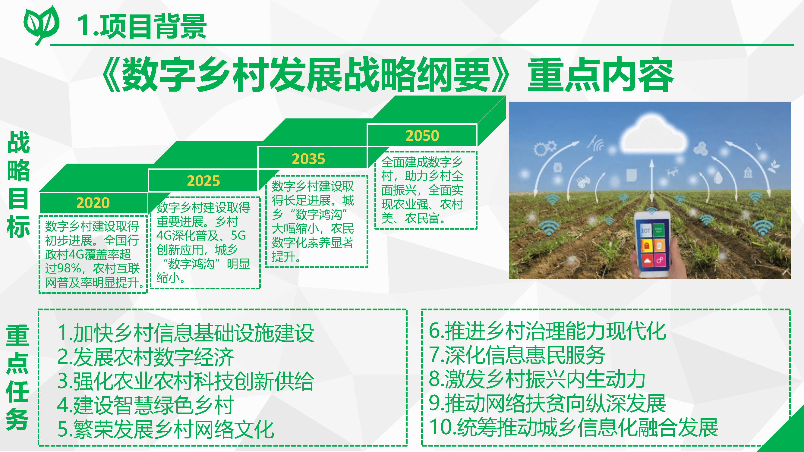 中央網(wǎng)信辦等七部門聯(lián)合印發(fā)《關(guān)于開展國家數(shù)字鄉(xiāng)村試點工作的通知》提出完善“三農(nóng)”信息服務(wù)體系,“三農(nóng)”問題目的是要解決農(nóng)民增收、農(nóng)業(yè)發(fā)展、農(nóng)村穩(wěn)定,三農(nóng)”問題關(guān)系到國民素質(zhì)、經(jīng)濟發(fā)展,也關(guān)系到社會穩(wěn)定、國家富強、民族復(fù)興。聚焦農(nóng)民生產(chǎn)生活實際需求,將“三農(nóng)”信息服務(wù)體系建設(shè)落到實處,為村民提供精細化的村務(wù)管理,人性化的惠民服務(wù),專業(yè)化的農(nóng)事生產(chǎn),生態(tài)化的村容村貌,新時代的鄉(xiāng)風(fēng)文明。