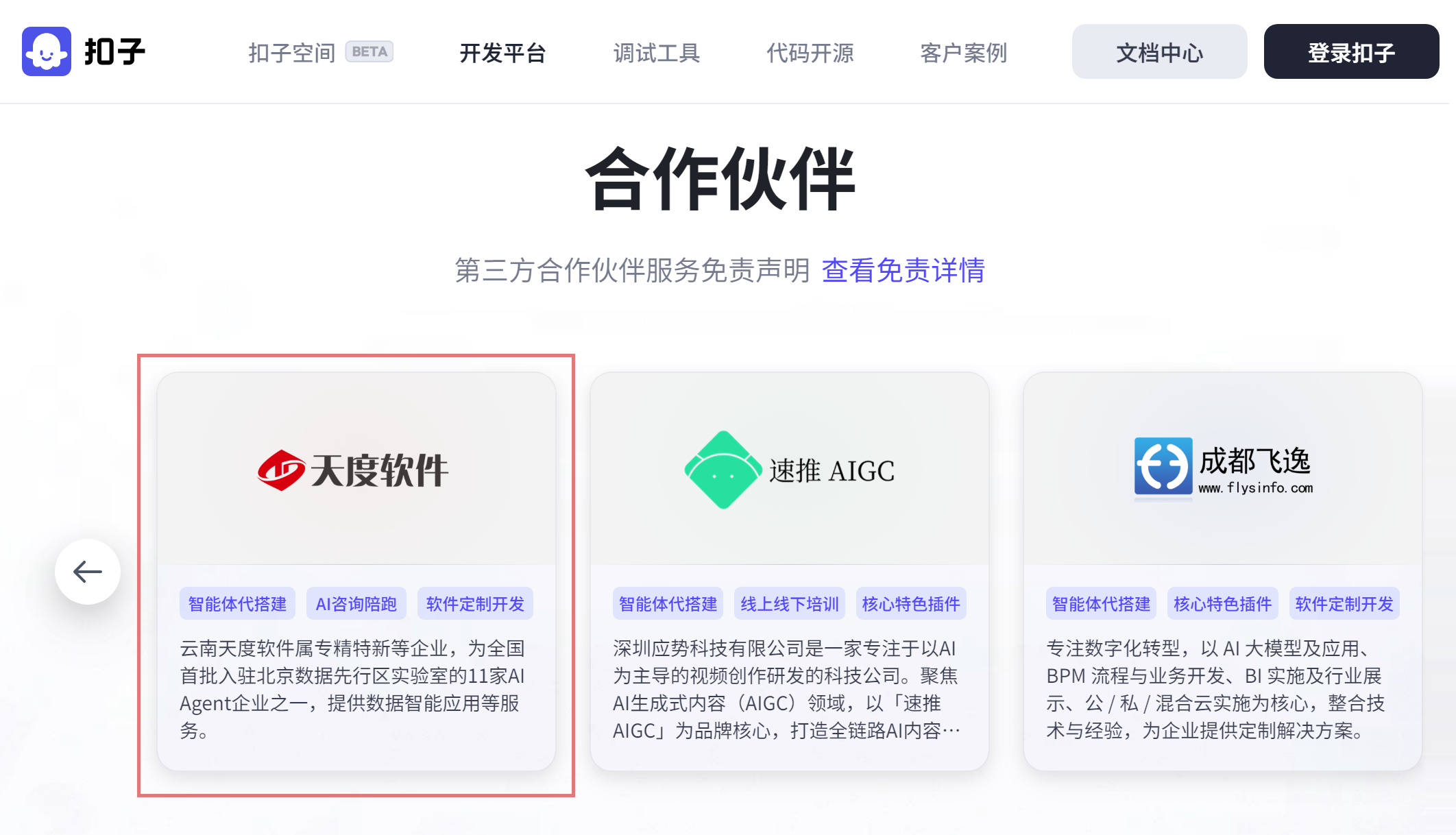 2025年8月,云南天度軟件與業(yè)界領(lǐng)先的AI平臺(tái)深度攜手,正式成為扣子生態(tài)全國(guó)合作伙伴。AI正在重構(gòu)企業(yè)協(xié)作的方式,而“扣子智能體”的核心價(jià)值在于讓每個(gè)組織都能以更低門檻、更高效率擁有定制化的AI能力。
