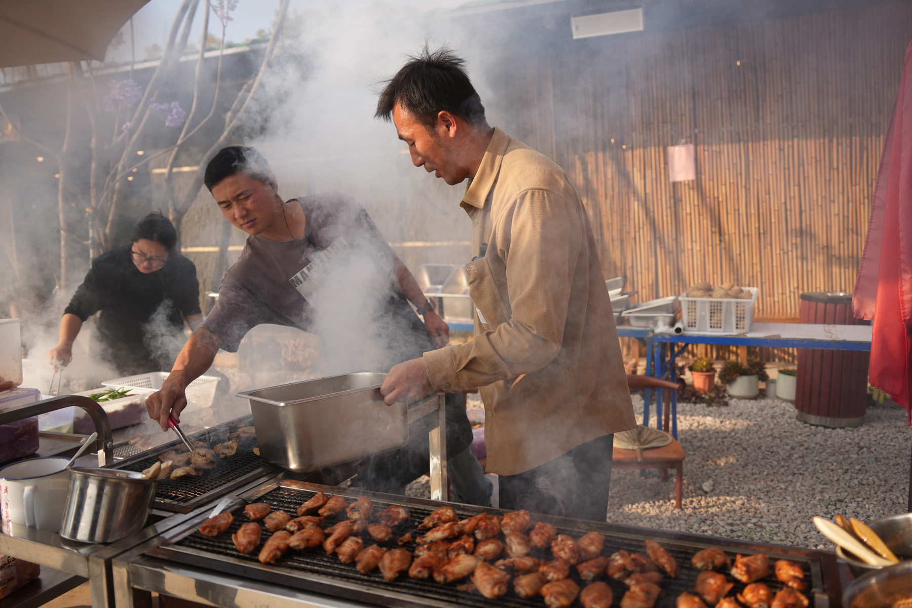 儀式過后,露天燒烤晚宴火熱開啟!美食美酒,暢敘情誼,大家盡情享受這場味覺盛宴。樂隊(duì)也從暖場伴奏轉(zhuǎn)為激情Live秀,《海闊天空》《追夢赤子心》等經(jīng)典旋律引發(fā)全場共鳴,點(diǎn)歌環(huán)節(jié)更讓現(xiàn)場成為歡樂的海洋。