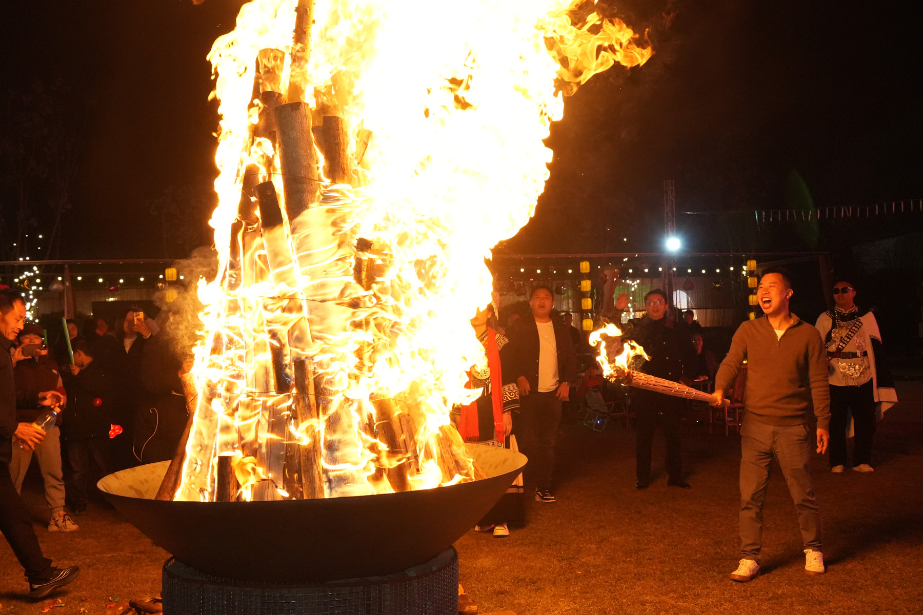 傍晚六點(diǎn)半,在眾人期盼中,集團(tuán)創(chuàng)始人鄭桂文先生手持火炬,莊嚴(yán)點(diǎn)燃中央主篝火?;鹧嫔v的剎那,溫暖與光明映照每一張笑臉,象征天度人凝心聚力、薪火相傳的奮斗精神。 篝火既燃,熱情引爆!在專業(yè)打跳團(tuán)隊(duì)的帶領(lǐng)下,所有人手拉手,圍著熊熊篝火,跳起歡快的民族打跳。歌聲、笑聲、腳步聲交織成歡樂的樂章,現(xiàn)場化作一片沸騰的海洋。