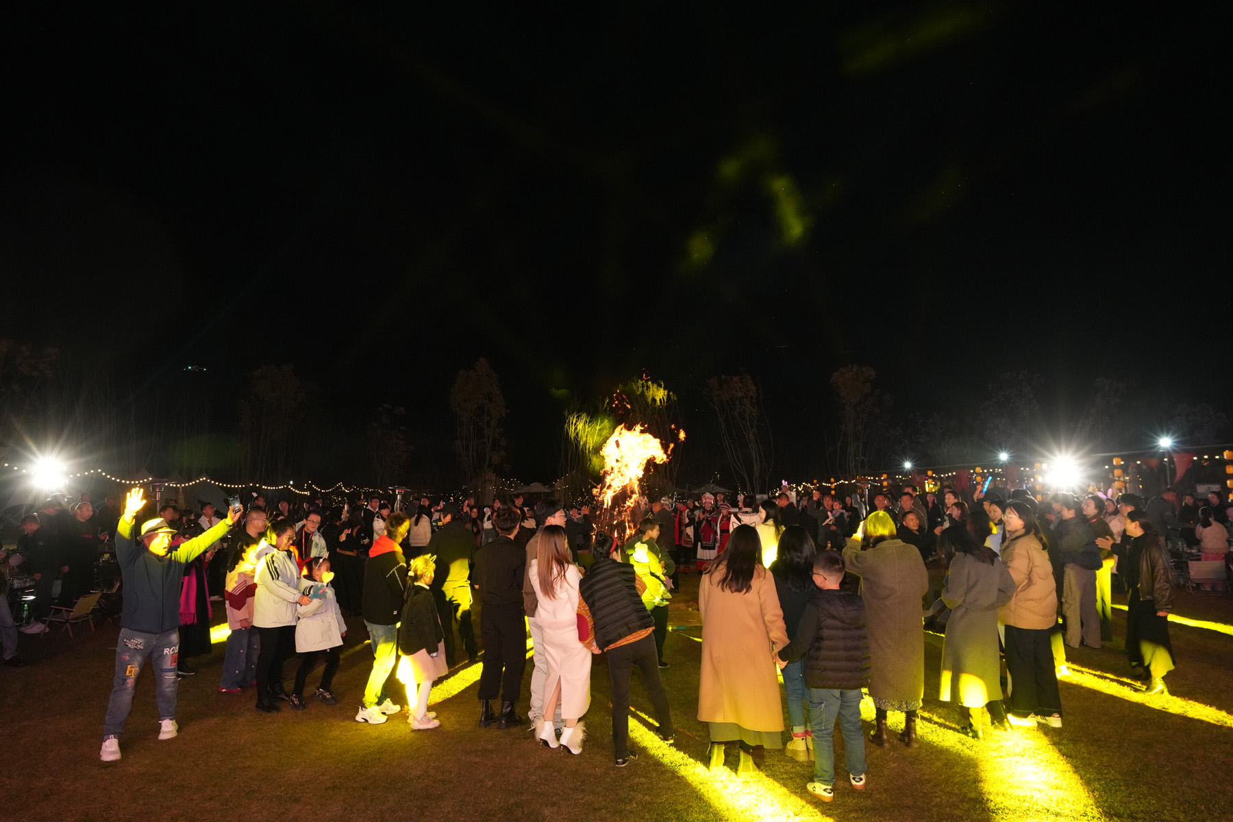 晚上七點(diǎn)半,伴隨主持人倒數(shù),一束束流光劃破夜空,絢麗的煙花層層綻放,如錦繡般鋪滿天幕。所有人共同仰望,在這璀璨時刻,許下對天度、對彼此最美好的祝愿。 煙花落幕后,篝火旁溫情延續(xù)。多位員工與嘉賓即興上臺表演,歌聲、朗誦、趣味互動接連不斷,為夜晚增添了無數(shù)驚喜與感動。