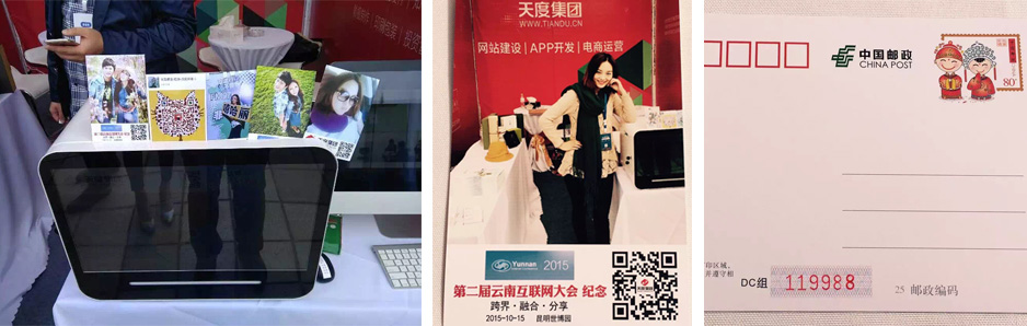 天度集團(tuán)作為云南本土很大的互聯(lián)網(wǎng)服務(wù)企業(yè),在本次參展中,向業(yè)界展示了“互聯(lián)網(wǎng)+”系列服務(wù)及產(chǎn)品,并聯(lián)合云南省郵政局展示了“互聯(lián)網(wǎng)+郵政”的系列應(yīng)用。在本次大會(huì)中,天度集團(tuán)參展展位為大會(huì)嘉賓免費(fèi)提供了“第二屆云南省互聯(lián)網(wǎng)大會(huì)紀(jì)念”個(gè)性化明信片打印,并取得廣泛關(guān)注和好評(píng)。